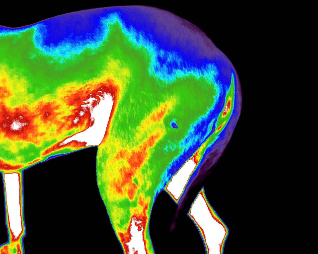 Canine and Equine thermography analyses the detectable skin surface temperature and presents the information in a colourful image. The location and pattern of these temperature differences can tell us a lot about underlying conditions.