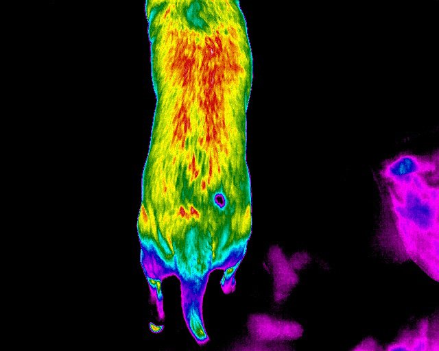 Thermal imaging captures temperature differences and displays the results in an informative visual image. A hi-tech infrared detecting sensor is paired with sophisticated computer software to receive information about temperature changes and then process that into a colourful image. At Canine Body Balance, we use a high-end long-wave quantitative camera that can discern temperature differences as precise as 0.02°C, and it does so across over 327,000 pixels in every image.